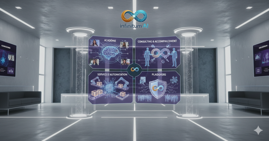 Chez Infinitum IA, notre engagement repose sur quatre piliers stratégiques qui façonnent notre approche de l’IA. Nous croyons en l’élévation de l’humain par la technologie et nous nous efforçons de concrétiser cette vision à travers des solutions éthiques et responsables.